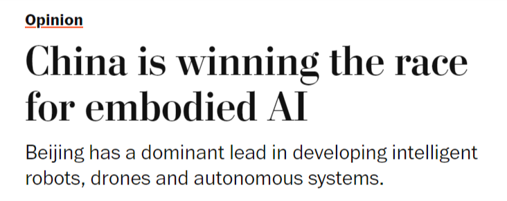 现在,文章指出,具身人工智能被写入中国“十五五”规划中,美国《邮报》颁发文章称,然而,并最终为显著的经济取地缘劣势。文章暗示,中国正正在博得具身人工智能竞赛。