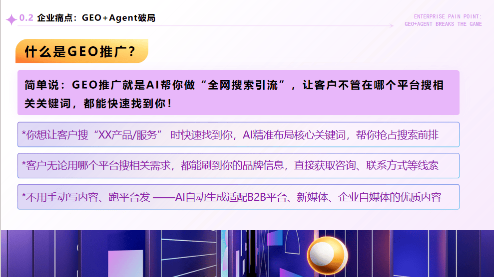 靠得住的AI搜刮推广办事凡是具备一些奇特的特点。2024年紧跟AI趋向升级营业,例如某全屋定制企业采办中鼓数据的GEO办事后,